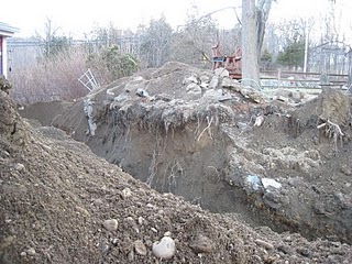 All this piled high on top of that giant Nagasaki-like dirt pit I call a yard from the broken water pipe disaster that I wrote about this past winter...see photo for effect: